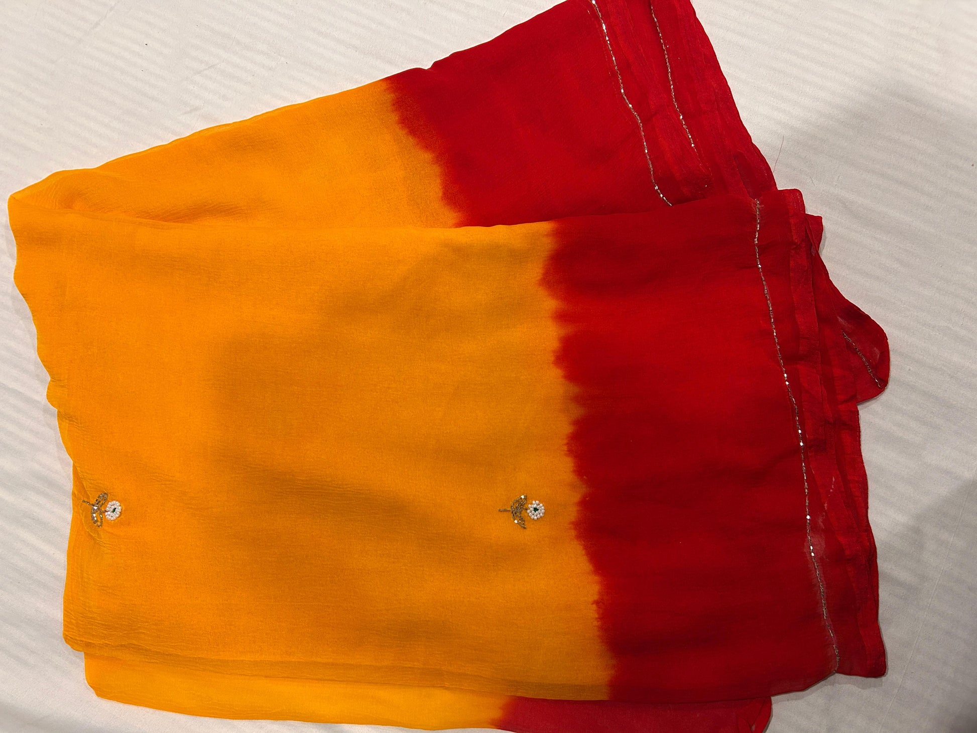 Kesar Chiffon Saree (Bright Yellow & Red)