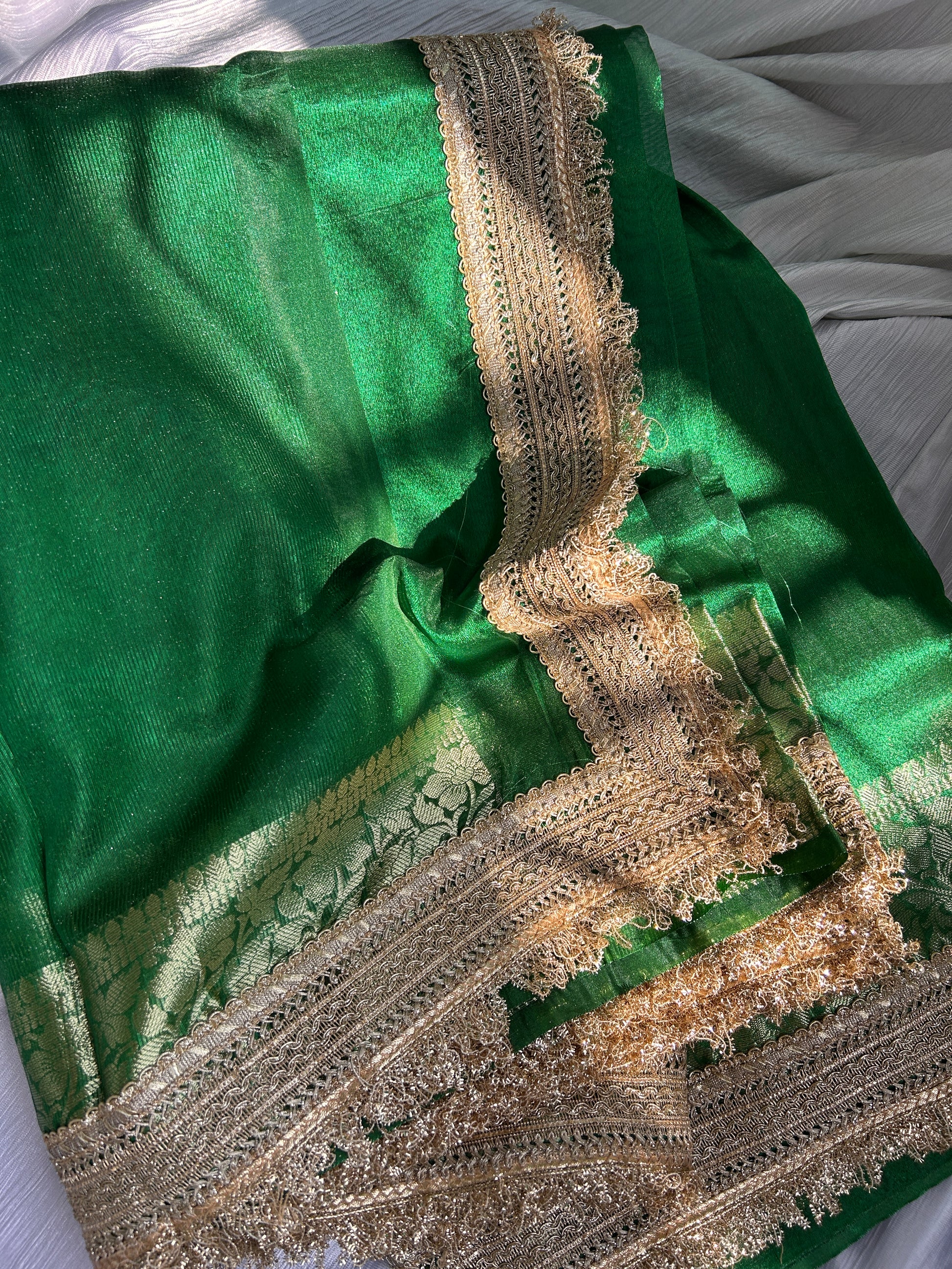 MeherunNisa Tissue Silk Saree (Deep Dark Green)