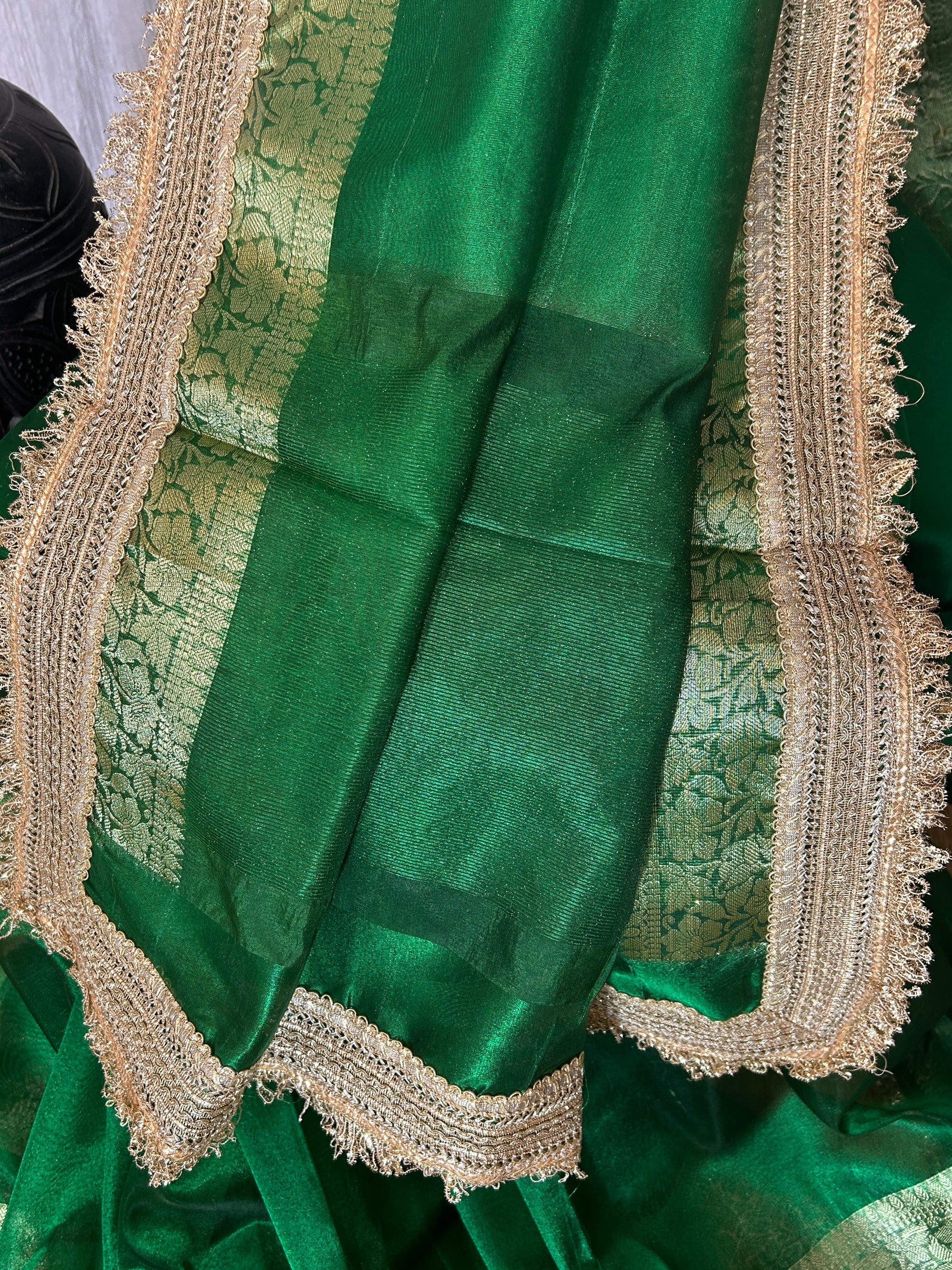 Color: Deep Dark Green with Heavy Zari Border & Lace Work